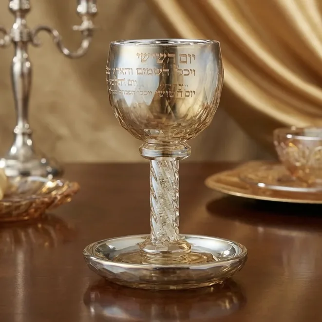 כוס קידוש קריסטל דגם "יום השישי" זהב אבנים