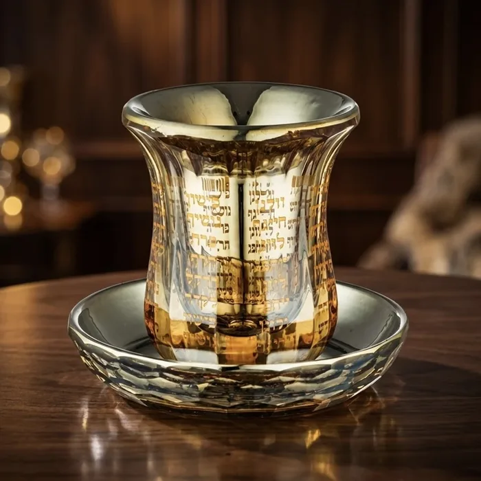 גביע מהודר לקידוש דגם "נהרות" גולד