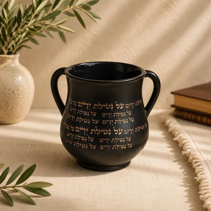 נטלה מהודרת - "על נטילת ידיים" שחור וזהב