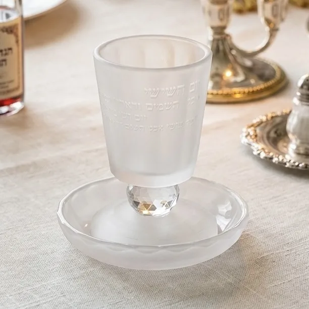 גביע קריסטל לקידוש - שילוב יהלום - חלבי